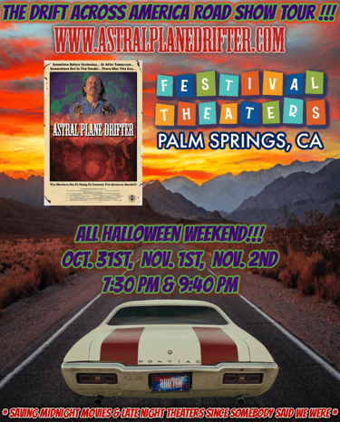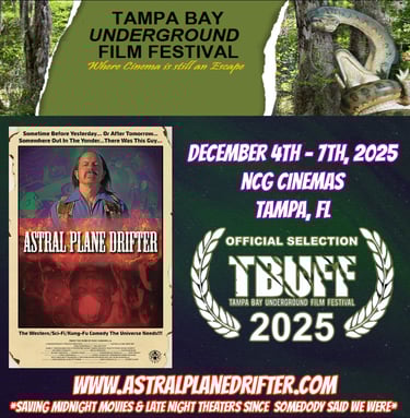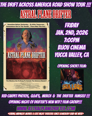 Multiple Festival Award Winning ASTRAL PLANE DRIFTER will be coming to a film festival or event screening near you soon.